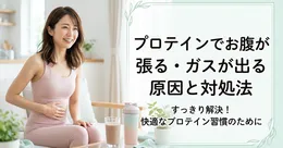 プロテインを飲むとお腹が張る・ガスが多くなる理由と対処法を解説。ホエイ・ソイそれぞれの原因と、お腹に優しいプロテインの選び方もまとめました。