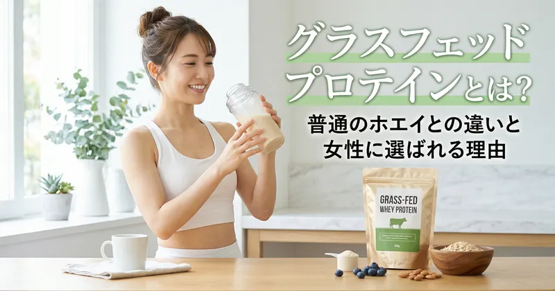 健康意識が高い女性の間で”グラスフェッド”という言葉を見かける機会が増えてきました。プロテインコーナーでも「グラスフェッド」表記の商品が並ぶようになりましたが、実際のところ何が違うのか、値段の差に見合うメリットがあるのか、気になる方は多いのではないでしょうか。